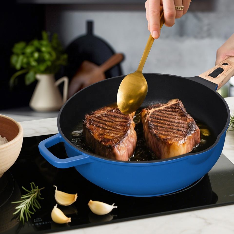 Apto para lavavajillas, mango extraíble, utensilios de cocina de aleación de aluminio fundido a presión con tapa