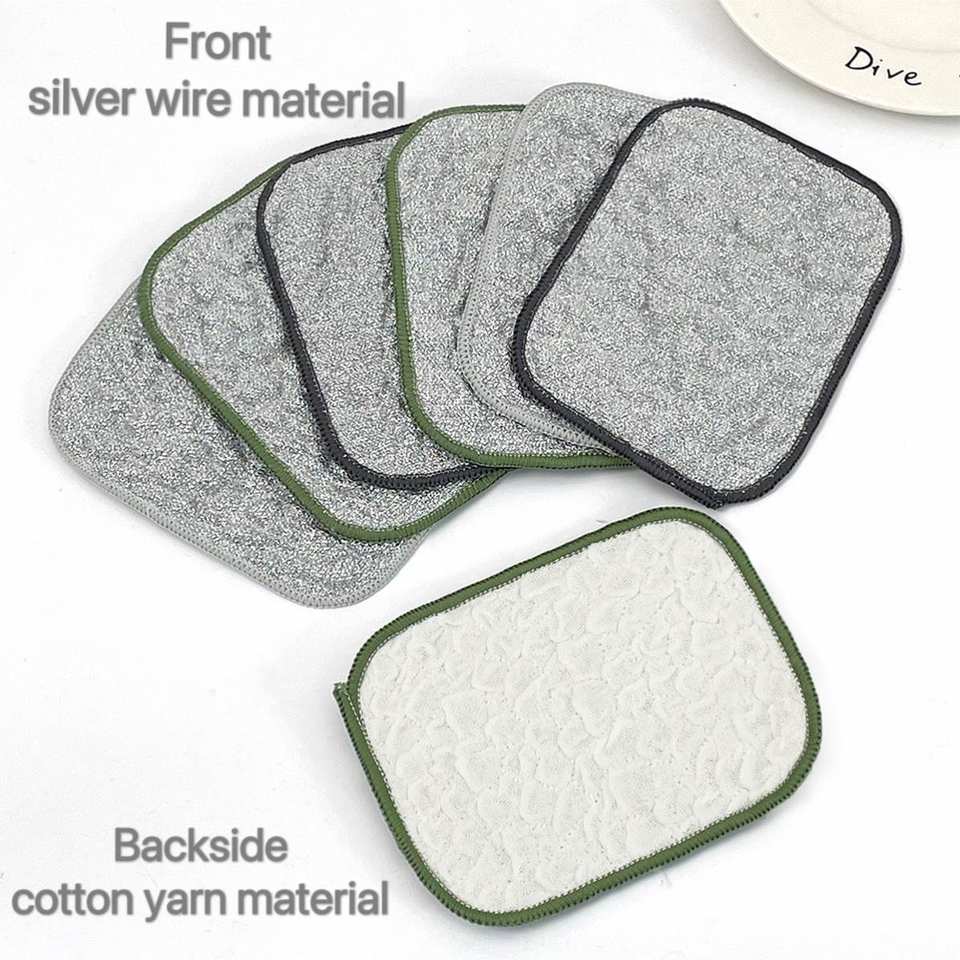 Paño para lavar platos Paño de limpieza de alambre de plata sin aceite Bola de lana de acero Toalla para lavar platos de algodón específica para Cocina