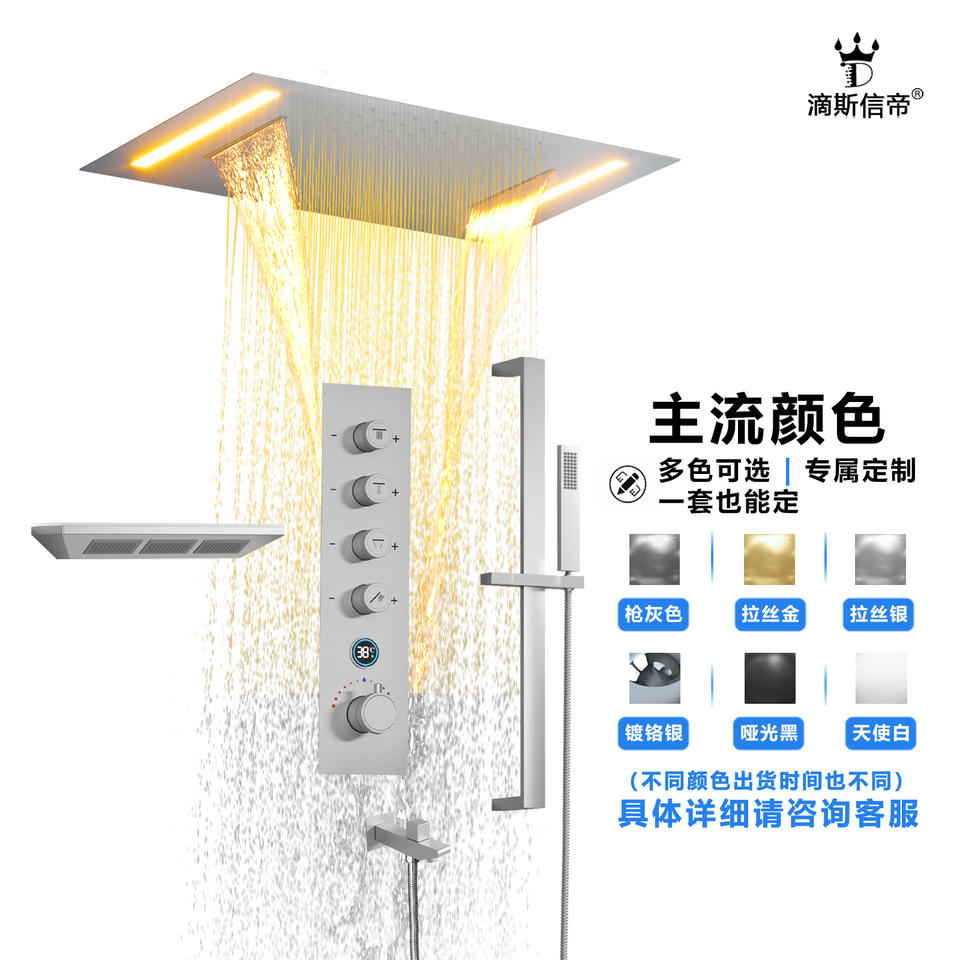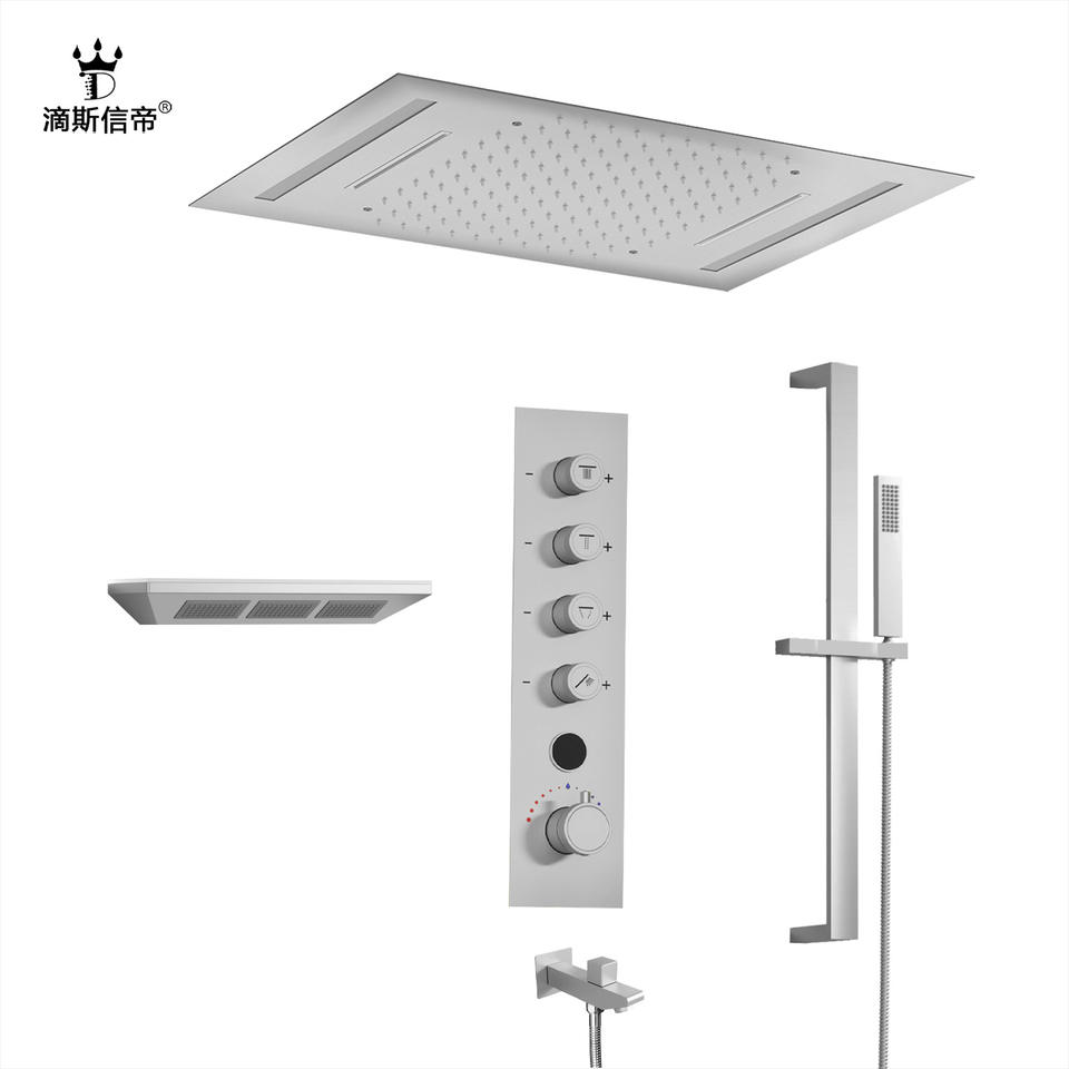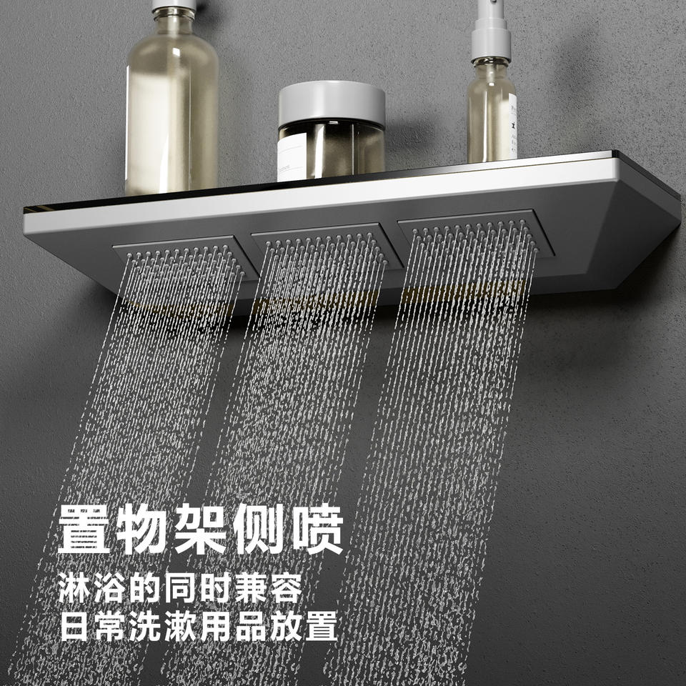 Disixindi - Juego de Ducha con Sistema de Aumento de Presión Oculto, Cuerpo de Válvula de Cobre, Rociador de Lluvia, Forma Rectangular, con Estante de Almacenamiento