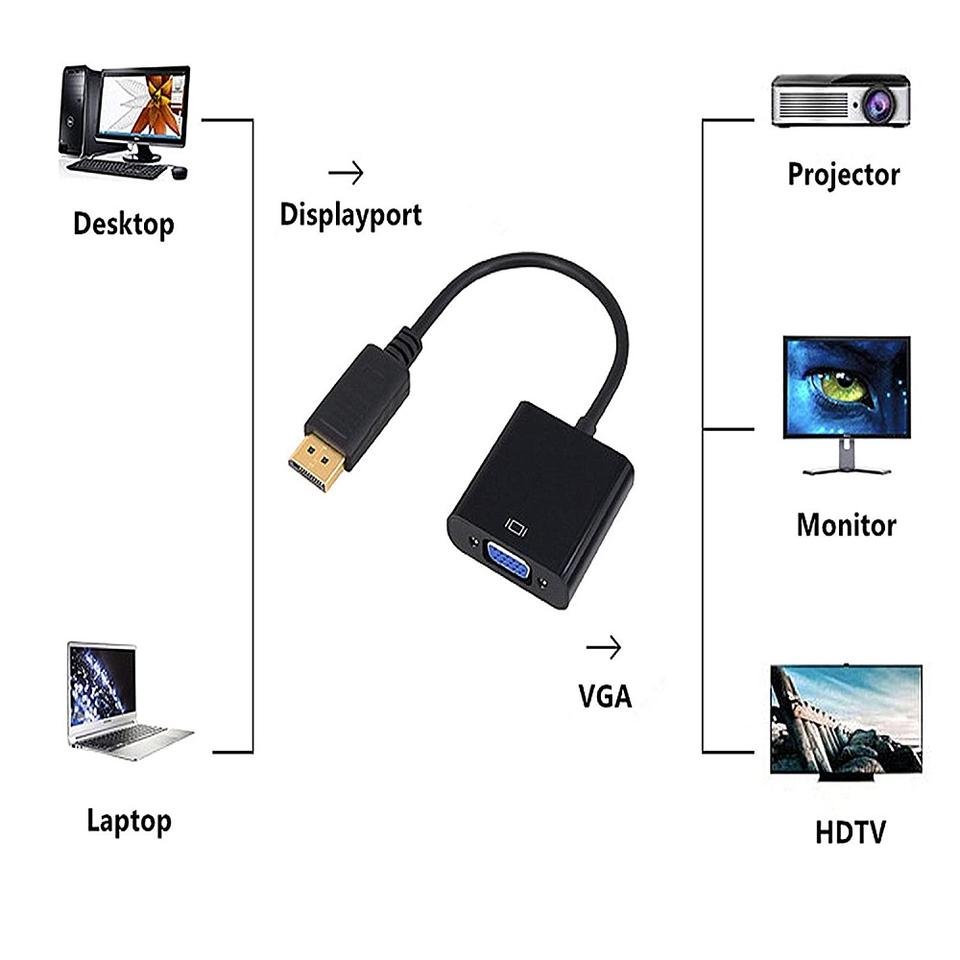 Adaptador DisplayPort a Vga, convertidor chapado en oro para conexión de monitor