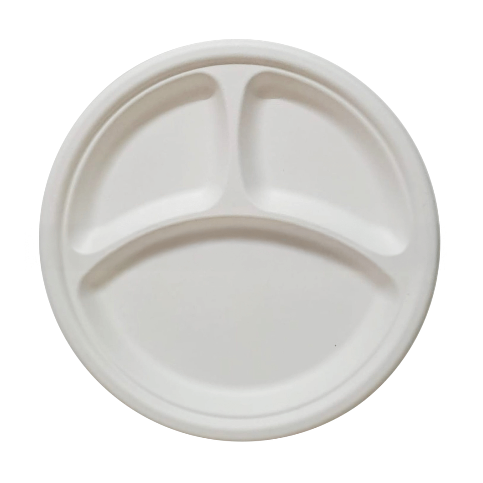 Vajilla Desechable Biodegradable 100%, Juego de Platos de Bagazo con 3 Compartimentos, Respetuoso con el Medio Ambiente, Apto para Microondas para Fiestas Personalizable 10