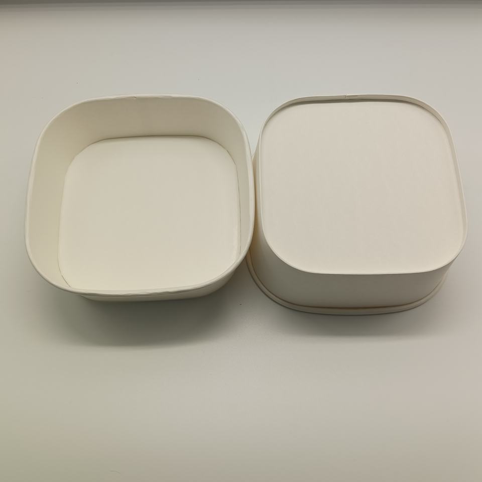 Tazón Rectangular Desechable de Papel para Ensaladas de 1000 ml con Tapas, Contenedor de Alimentos con Diseño Personalizado