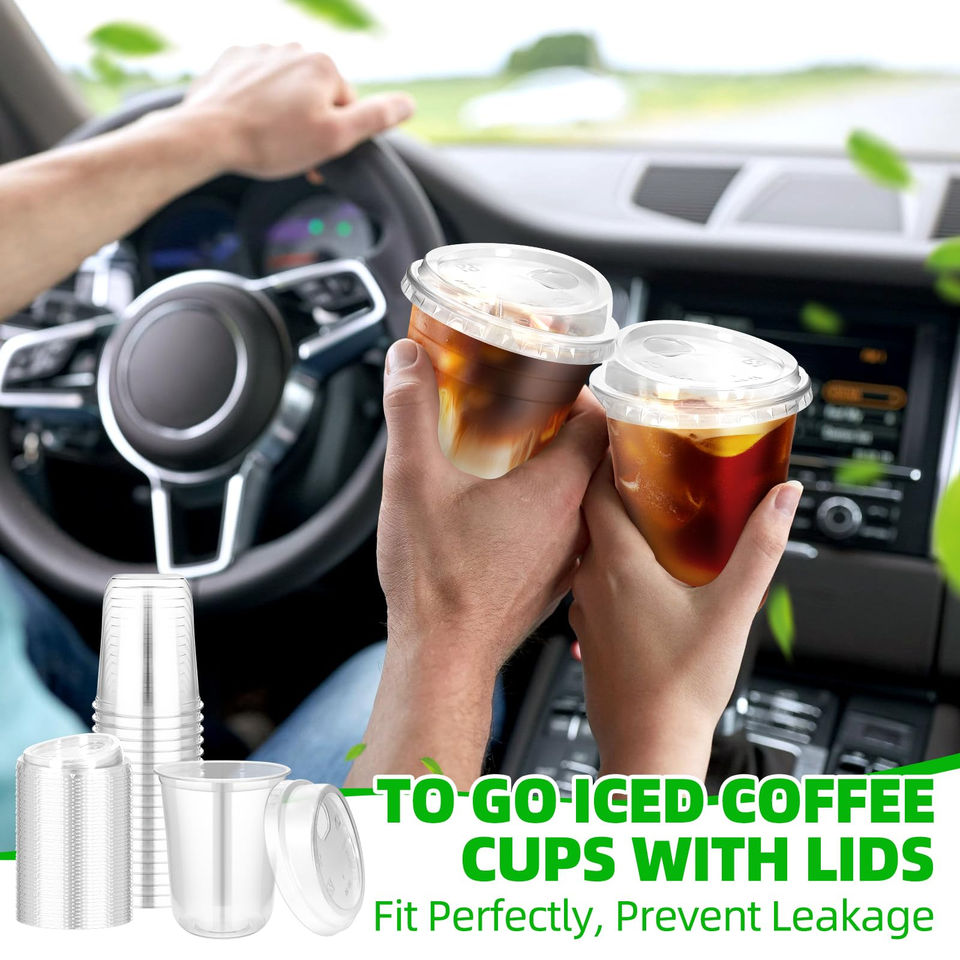 Vasos de Café Desechables, Libres de BPA, Ecológicos, Biodegradables, con Tapas sin Pajita para Café Helado, Smoothies y Bebidas Frías - Para Fiestas