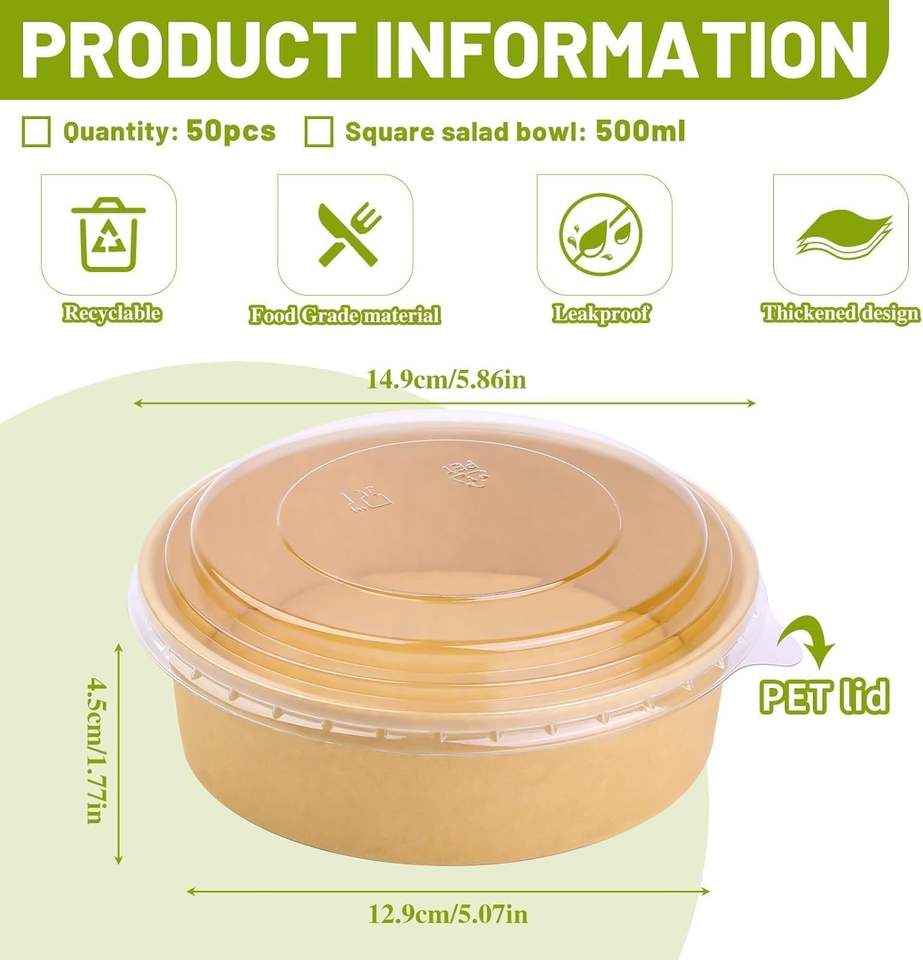 Platos Desechables Biodegradables de Bagazo, Tazón Redondo para Sopa, Contenedor de Alimentos, Plato, Tazón, Vasos