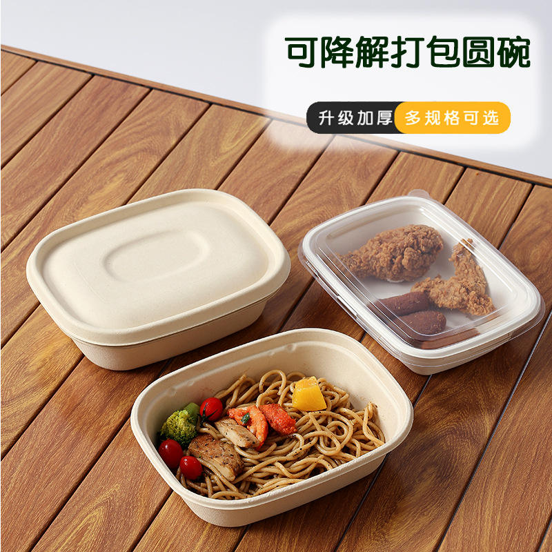 Desechable Biodegradable Caña de Azúcar Pulpa Comida Ligera Fruta Ensalada Rectangular Bento Picnic Caja para Llevar