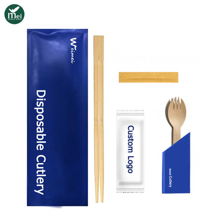Juego de palillos de bambú servilleta tenedor de madera envuelto biodegradable desechable
