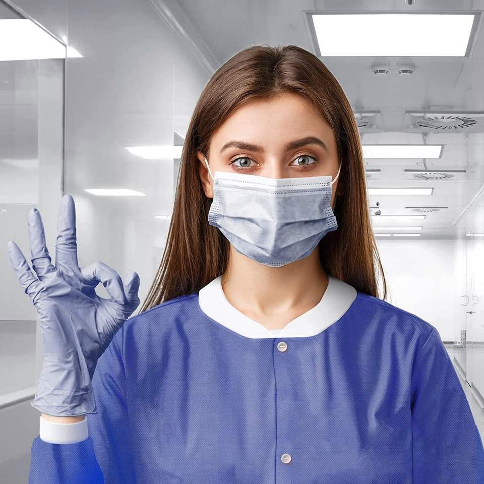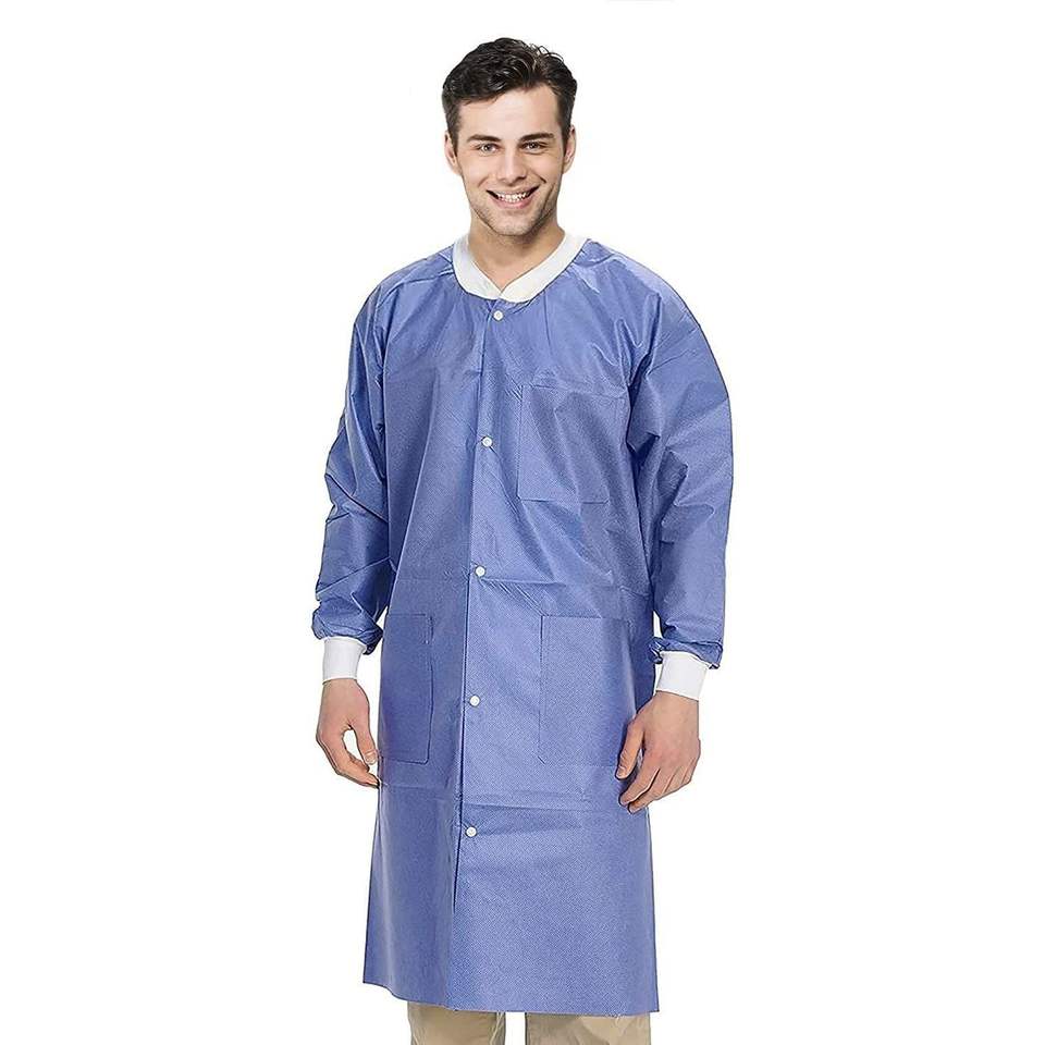 Batas de Laboratorio Desechables de SMS Azul Arándano hasta la Rodilla para Adultos, 45 GSM, Paquete de 50 - Para Laboratorios y Hospitales