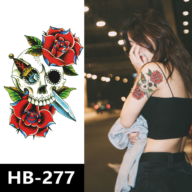 Tatuajes Temporales Desechables con Diseño de Calavera y Flores, Resistentes al Agua, para Brazos, para Hombres y Mujeres