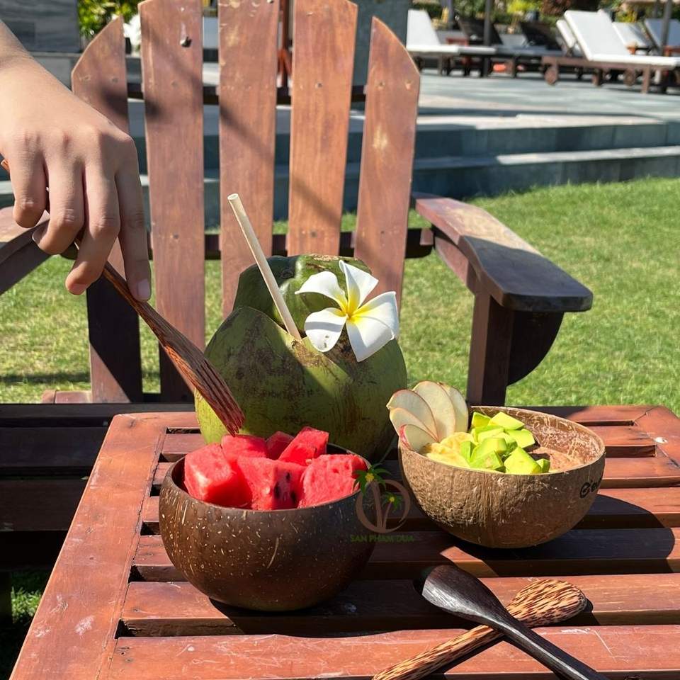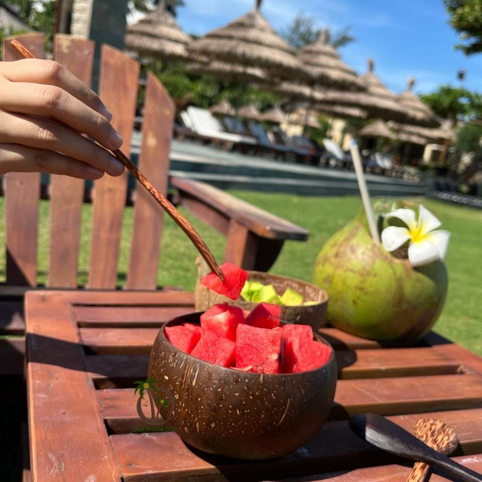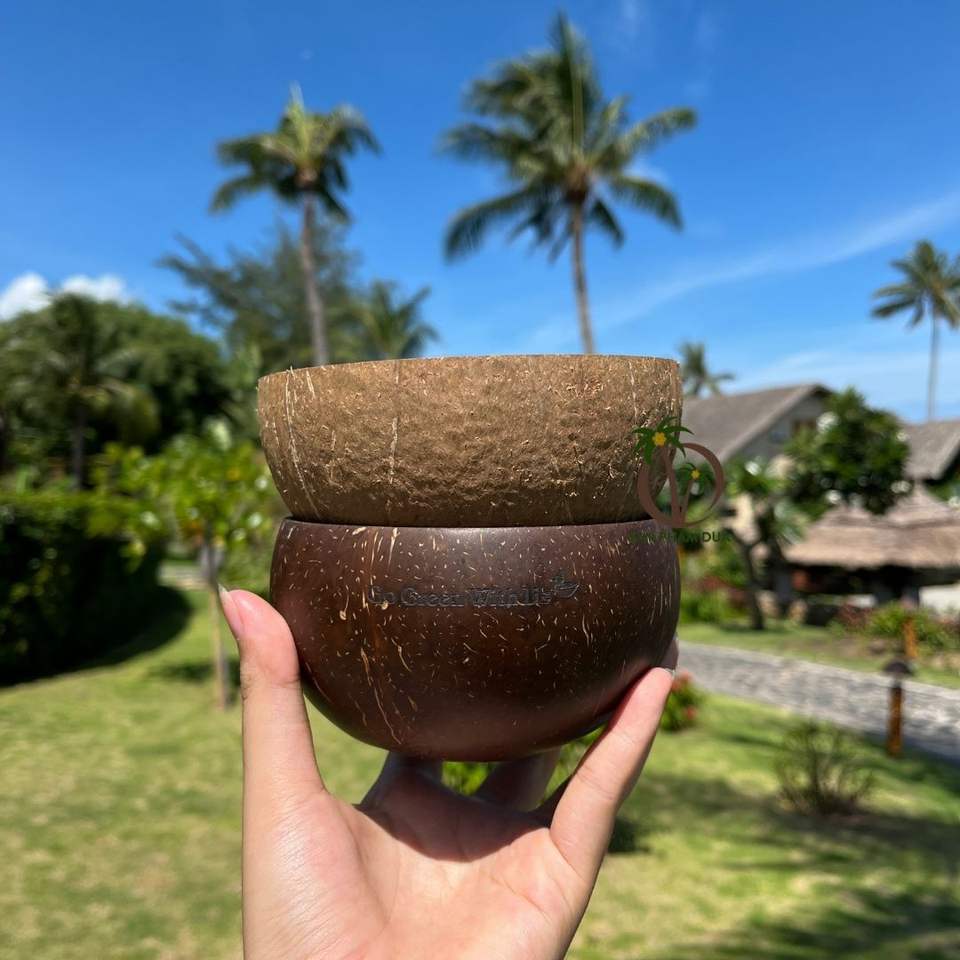 Tazón Desechable de Cáscara de Coco con Cuchara - Ecológico, Ligero - Diseño Bohemio para Camping - Logotipo Personalizado Disponible - 12-13 cm
