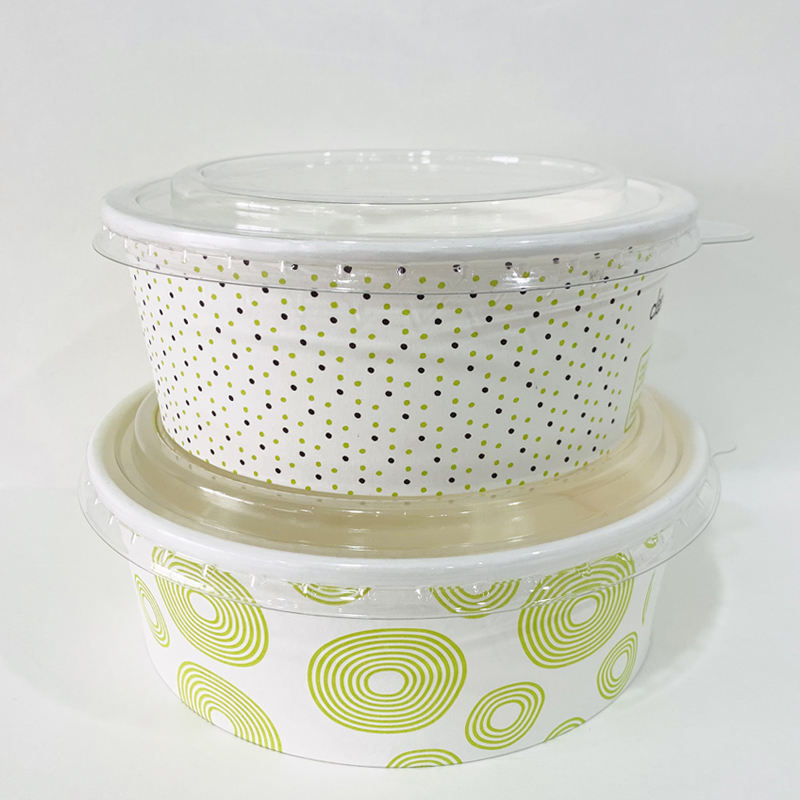 Taza y tazón de papel desechable, impresora para llevar ensalada, Bol de pla kraft, caja de pulpa de fibra de bambú, Bol de papel con tapa
