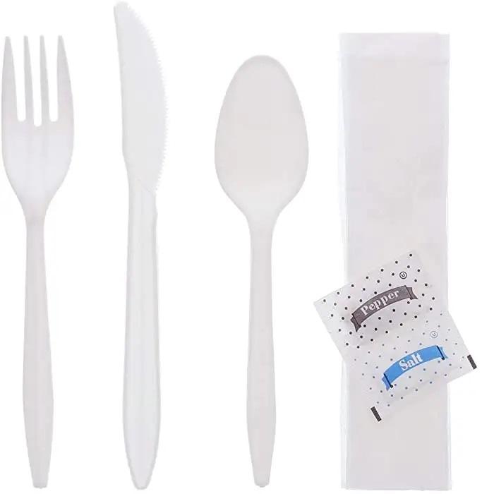 Set de cubiertos:Cuchillo + Tenedor + Cuchara + Servilleta + Sal y Pimienta