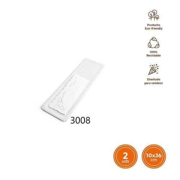 Aspecto:Bandeja rectangular blanca con estampado de encaje