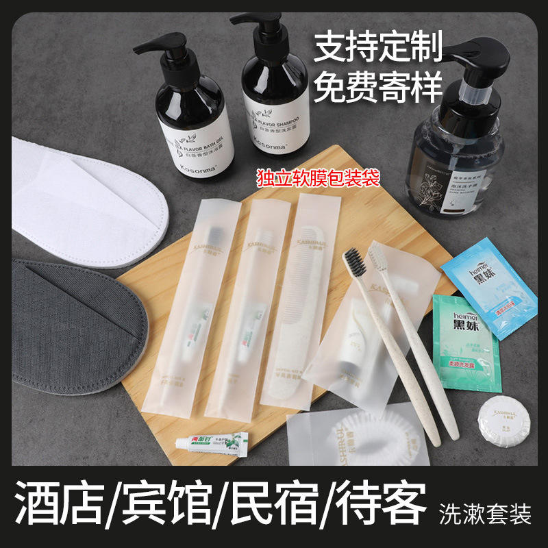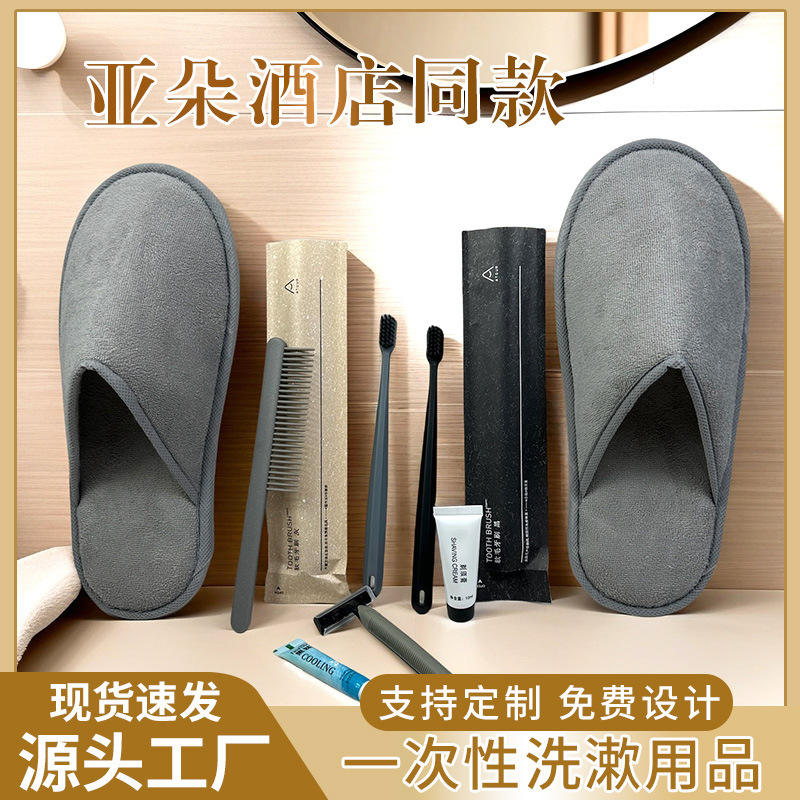 Set de Artículos de Aseo Desechables para Hotel con Pantuflas, Cepillo de Dientes, Pasta de Dientes, Champú, Gel de Baño, Muestra Disponible, Logotipo Personalizado