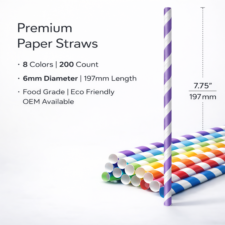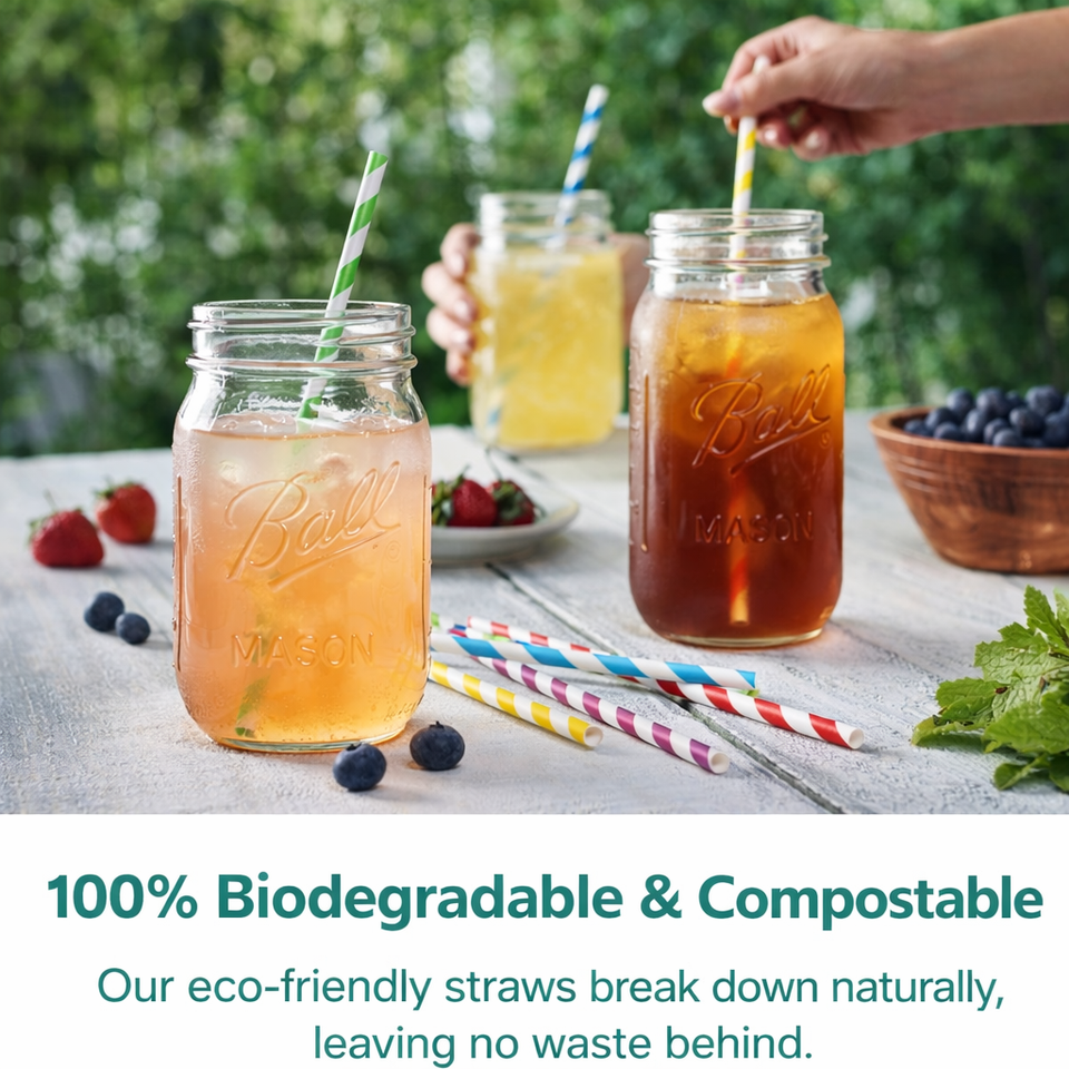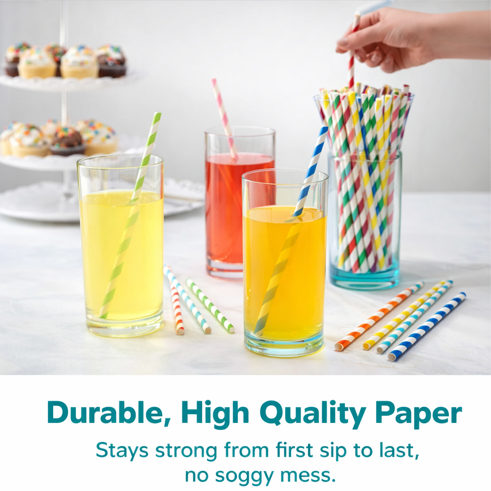Pajitas de Papel Kraft Desechables, Pajitas de Papel Biodegradables, Pajitas de Papel para Beber Envueltas Individualmente