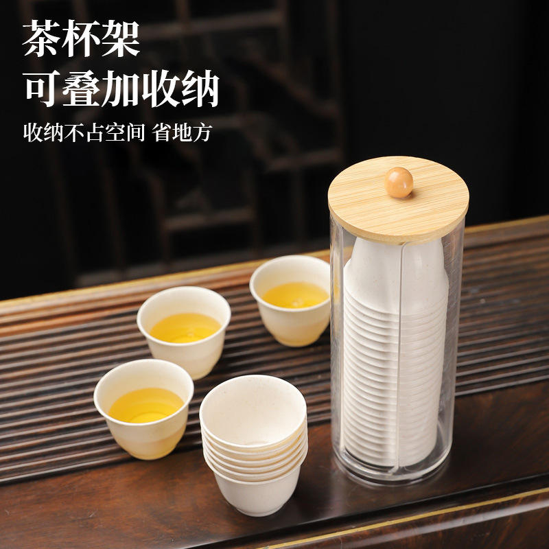 Disposable Kung Fu Tea Cup Holder Cylinder With Lid 40-60 Pcs Food Grade Storage Rack For Afternoon Tea