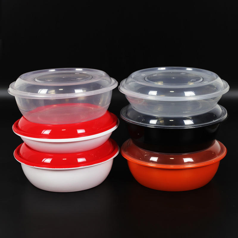 Disposable Lunch Boxes Round Bowls PP Plastic Thickened With Lid Takeout Packaging Food Storage Containers Orange Red Black
