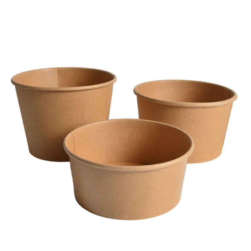 Cuenco de papel desechable biodegradable desechable empaquetado impreso comida rápida Blanco/papel Kraft ensaladera con tapa