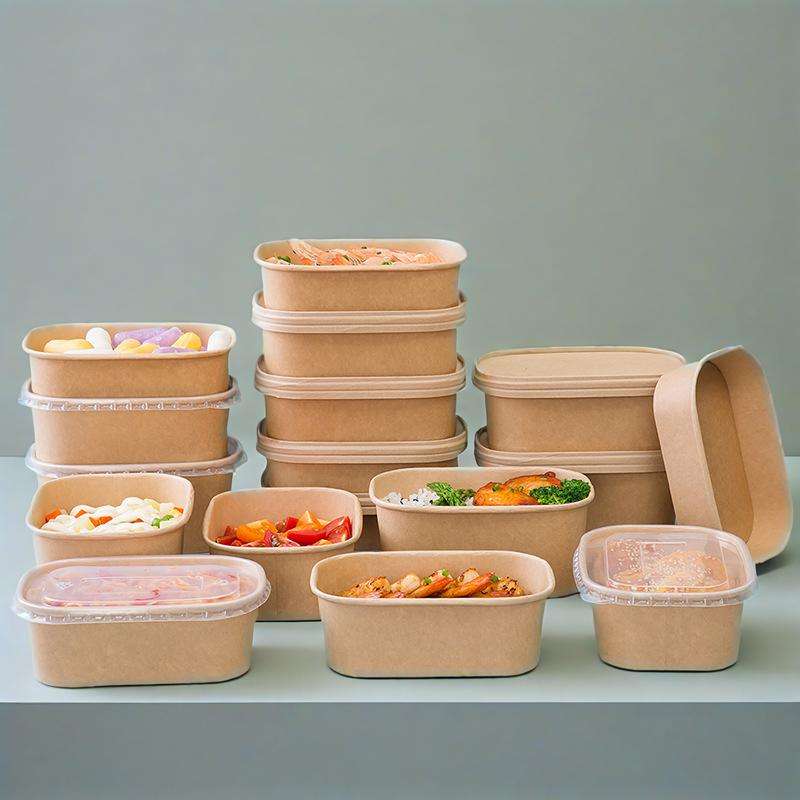 Tazón de Papel Desechable con Tapa, Platos de Papel Kraft para Llevar, Tazón de Papel Redondo al por Mayor para Comida Rápida