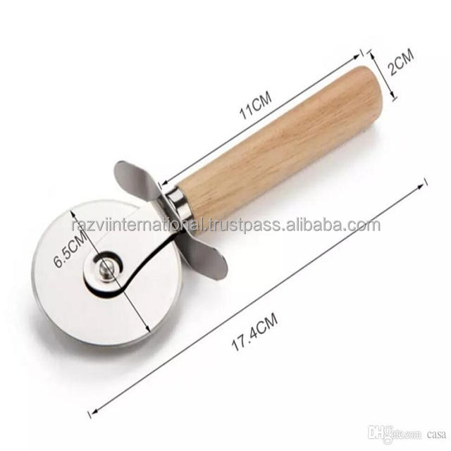 Utensilios Desechables para Pizza, Mango Largo de Madera, Construcción Metálica, Cortador Conveniente, Apto para Lavavajillas