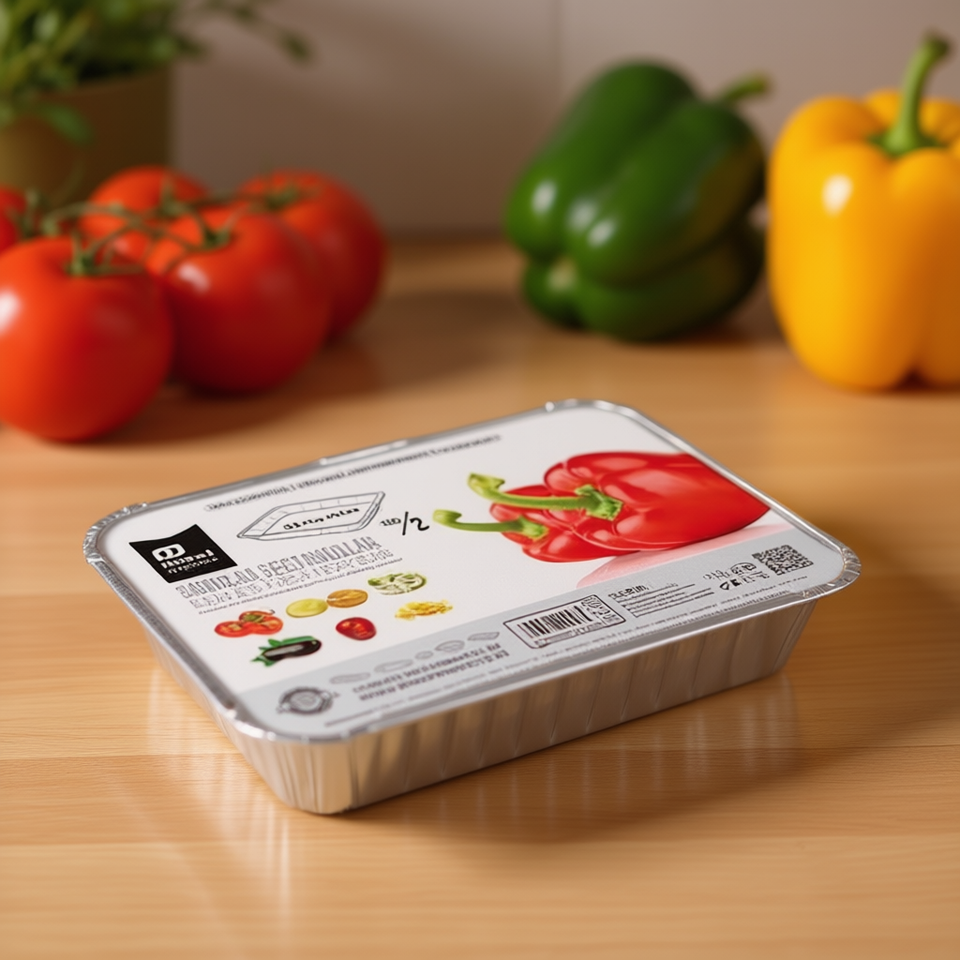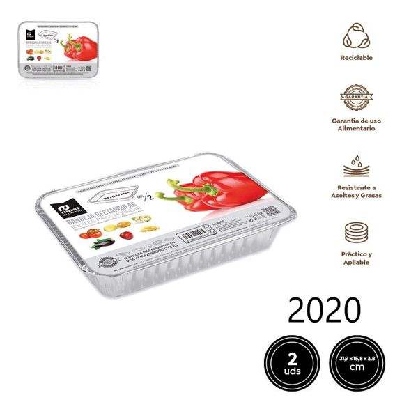 Contenedor Desechable Rectangular de Papel Aluminio con Tapa de Aluminio 21.9x15.8x3.8mm para Comida para Llevar