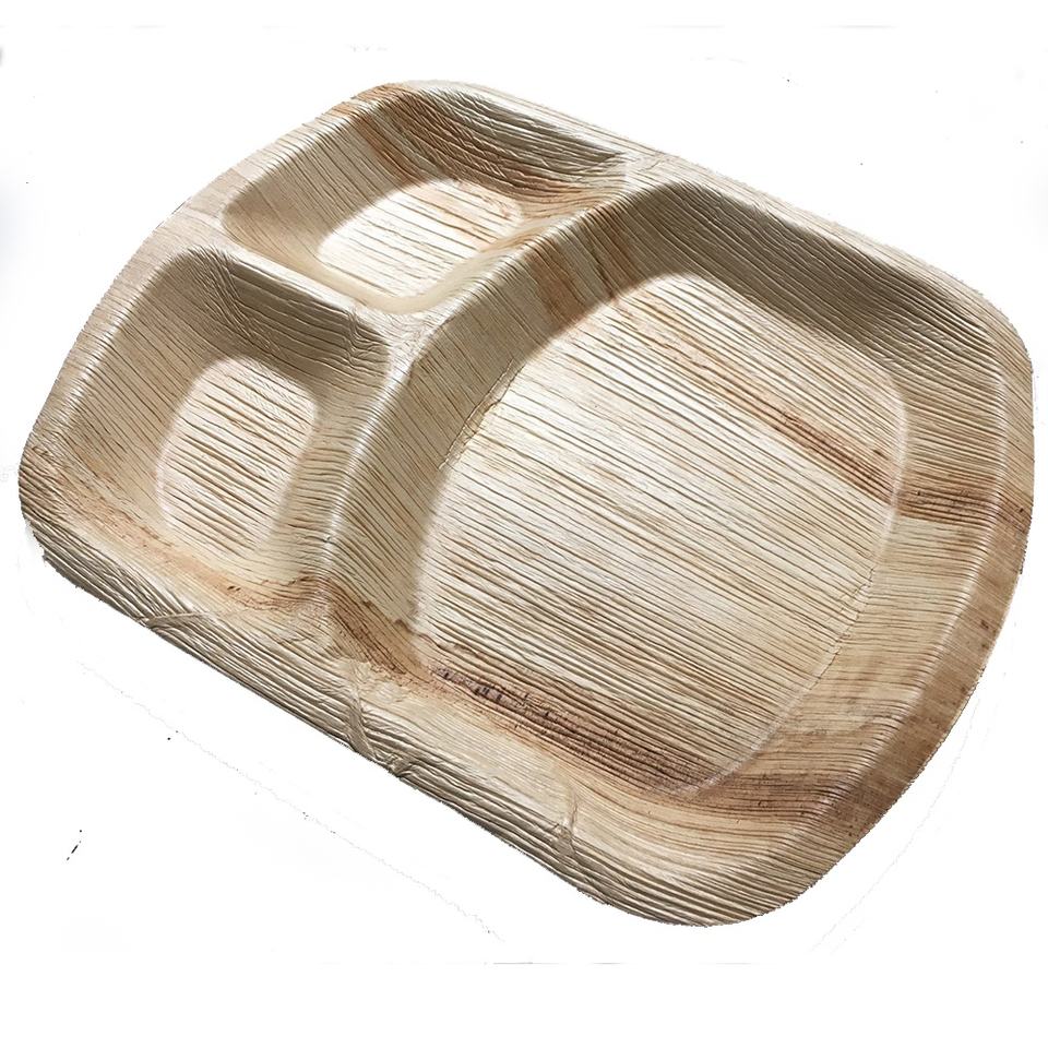 Isposable-plato rectangular de hojas de palma, bandeja para servir alimentos, bandeja desechable