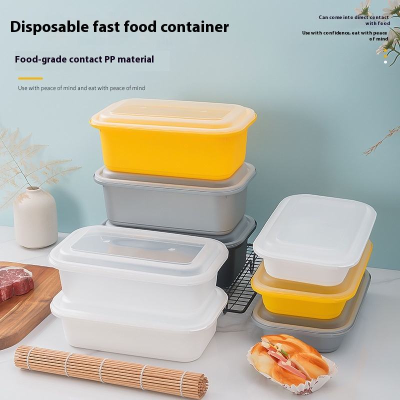 Fiambrera de plástico desechable, rectangular, gruesa, para microondas, con hebilla de seguridad, tapa de plástico, para llevar