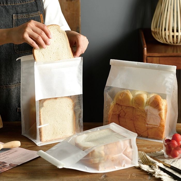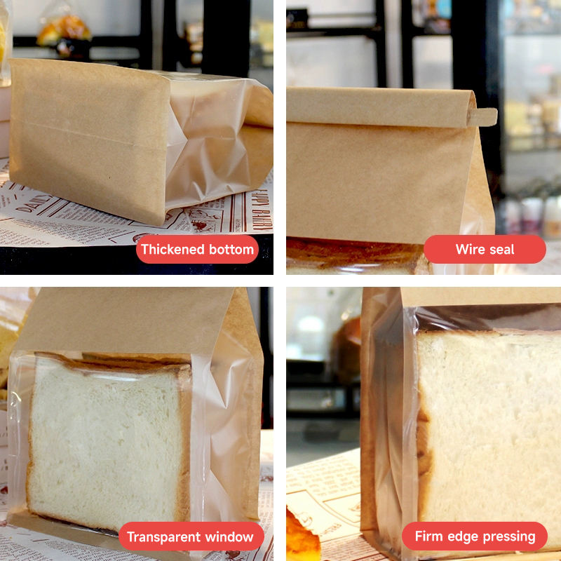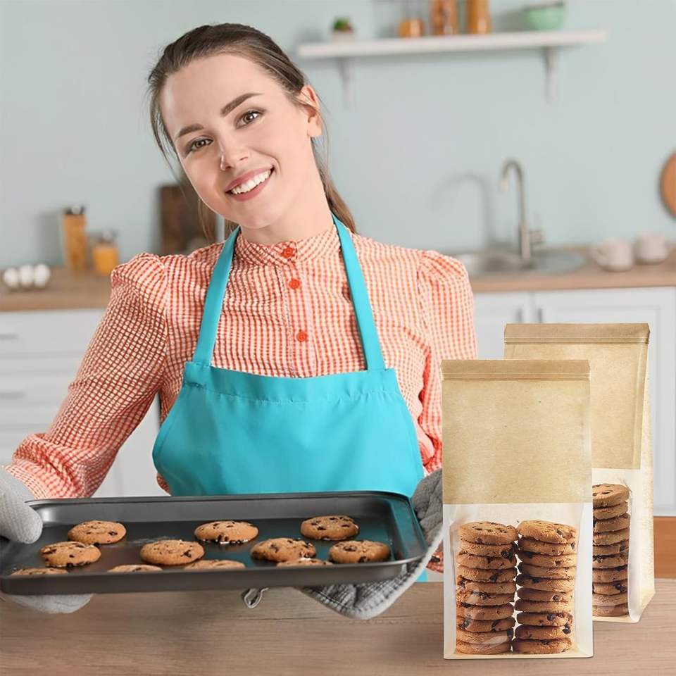 Bolsas de Papel Kraft Desechables para Reciclar Pan, Panadería, Comida, Palomitas de Maíz, Bolsas de Papel a Prueba de Grasa con Ventanas