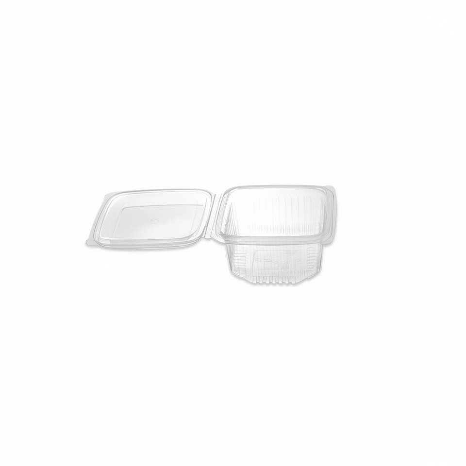 Contenedor de Alimentos Rectangular de Plástico Desechable y Reutilizable de 375 cc con Tapa Abatible 1501R ENVASE TAPA BISAG RECTANG Bandeja Apilable