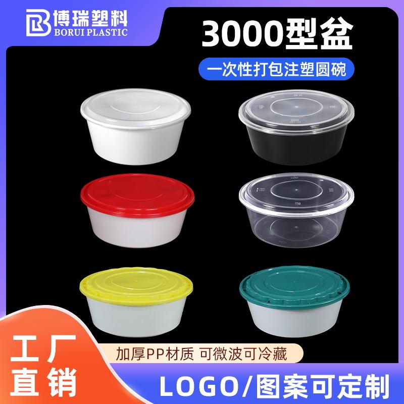 Disposable Round Food Bowl Type 3000 Injection Molded Thickened Pressure Resistant Takeaway Container Hotel Canteen Use