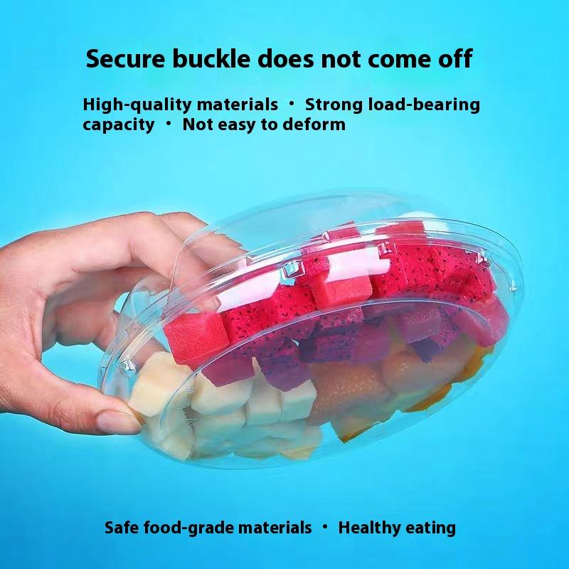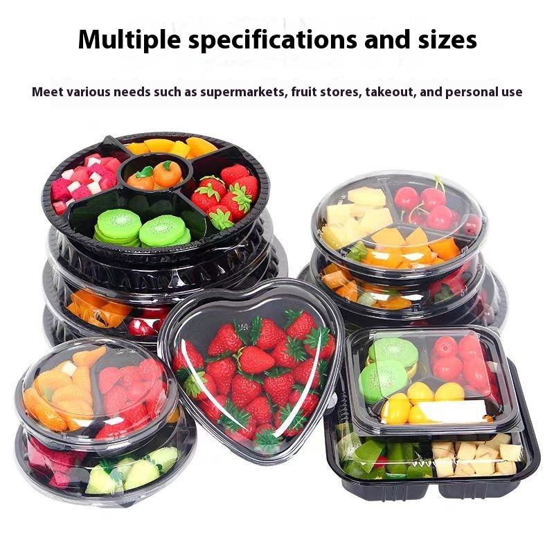 Caja de pesca de fruta transparente redonda desechable con tapa compartimentos de plástico para fruta fresca cortada ensalada materiales reciclados