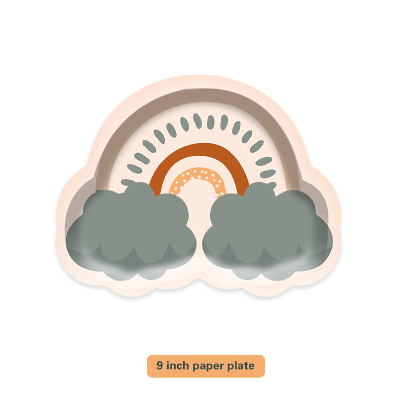 Vajilla Desechable con Diseño Bohemio de Arcoíris, Juego de 4 Artículos Personalizados: Plato de Papel, Servilleta y Vaso de Papel, Decoración para Fiestas, Artículos para Fiestas