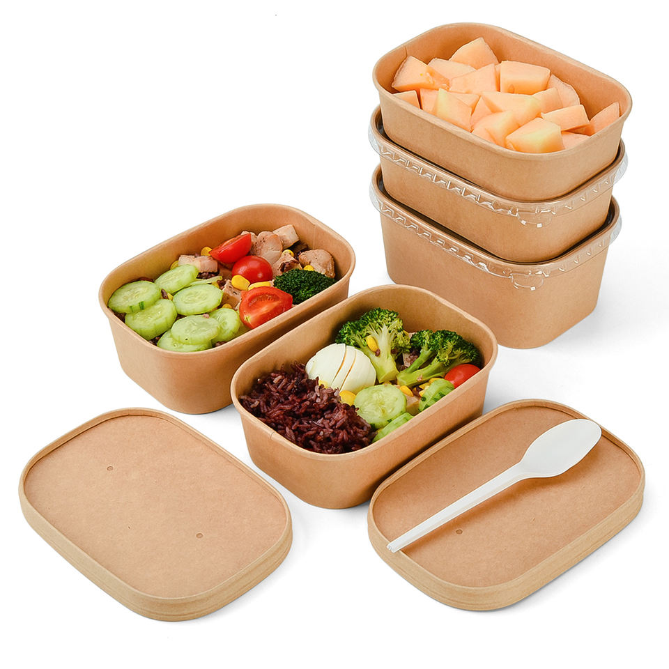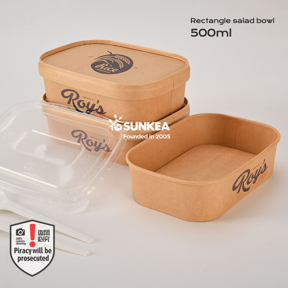 Tazón de Papel Rectangular Poco Profundo de 500 ml para Ensaladas, Personalizado con Logotipo para Llevar