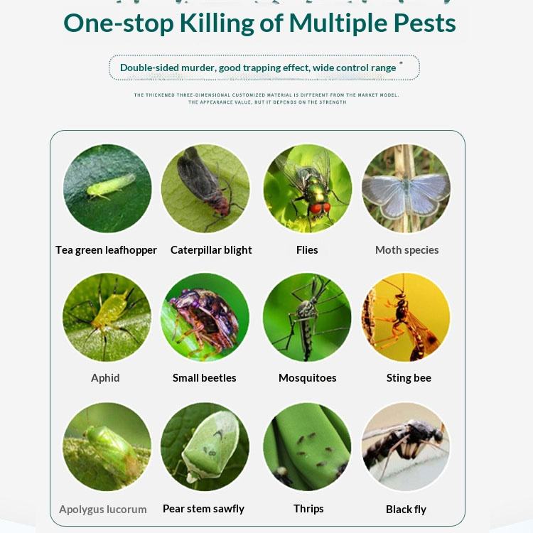 Plagas objetivo:Mosca de la fruta, Mosquito del hongo, Mosca blanca, Pulgón, Trips