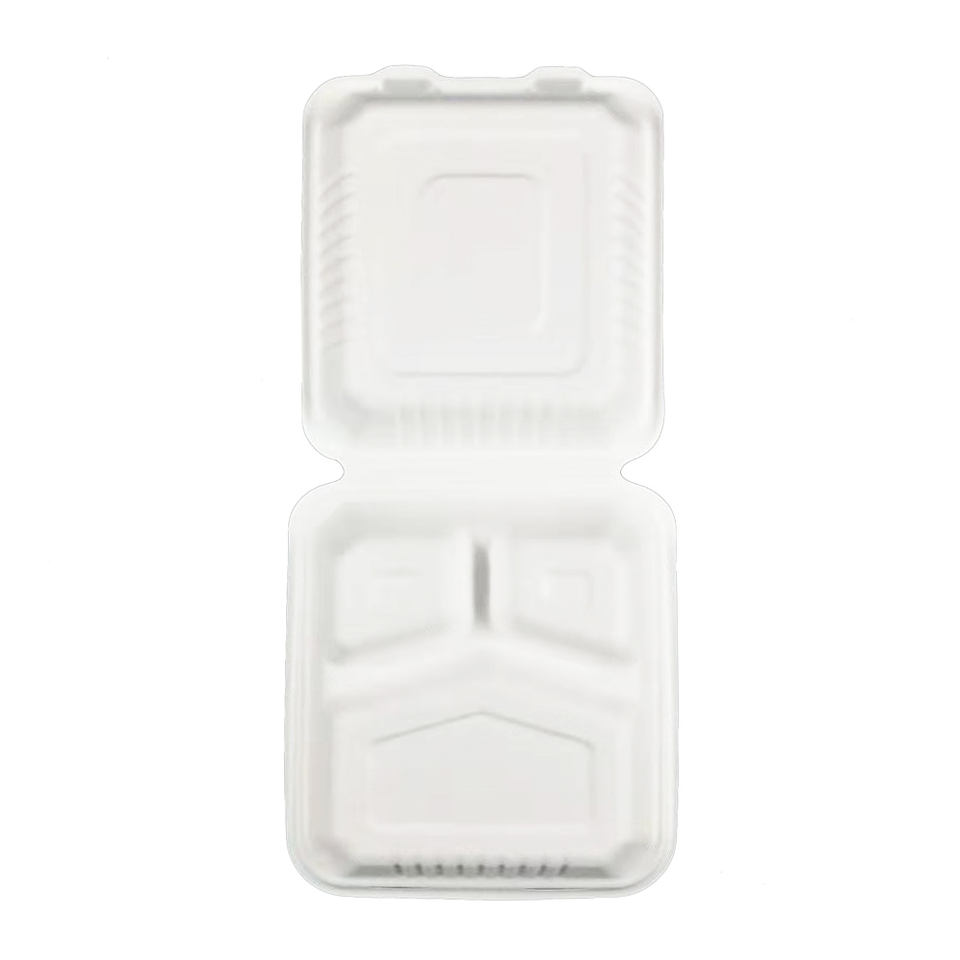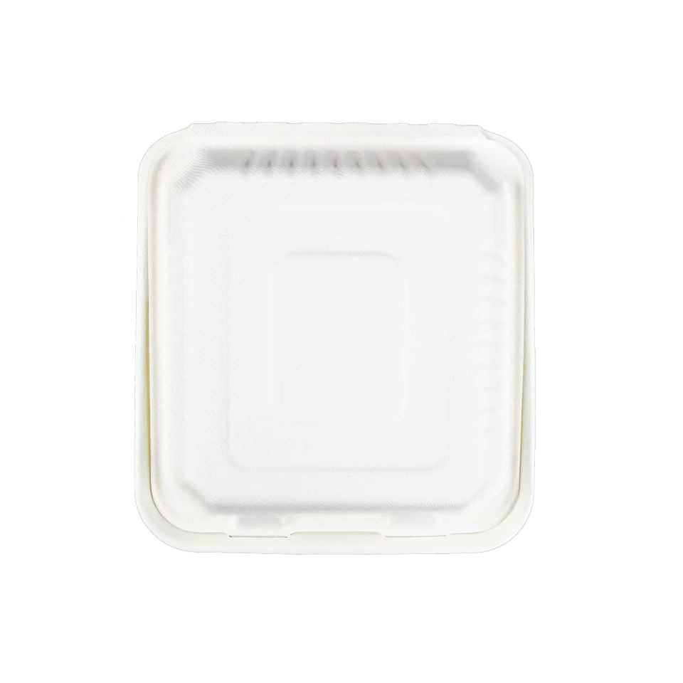Fiambrera desechable grande de 8 pulgadas, caja de almuerzo con compartimiento de concha, caña de azúcar para retirar, papel de pulpa, contenedores de alimentos, embalaje