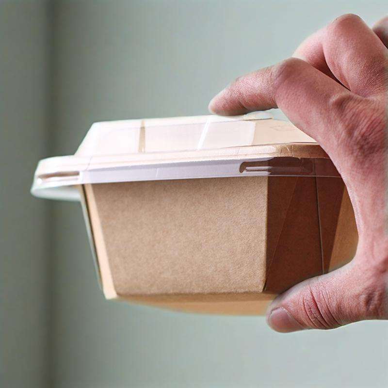 Proveedores de contenedores de alimentos blancos desechables Ensaladera de papel Kraft octángulo rectangular con tapa de Pp y mascota