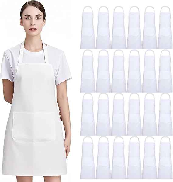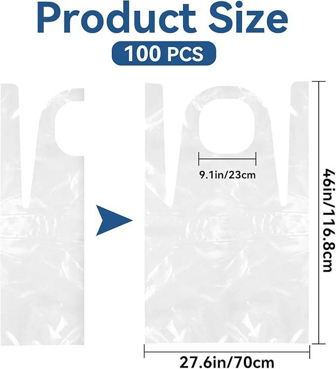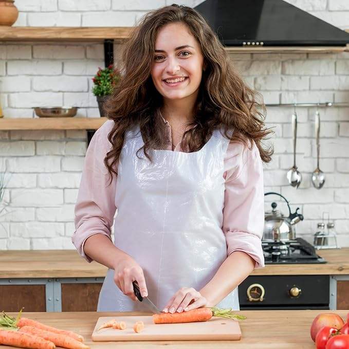 Delantales Desechables de Plástico Blanco, Material de Polietileno Impermeable, Ideales para Cocinar, Pintar, Manualidades