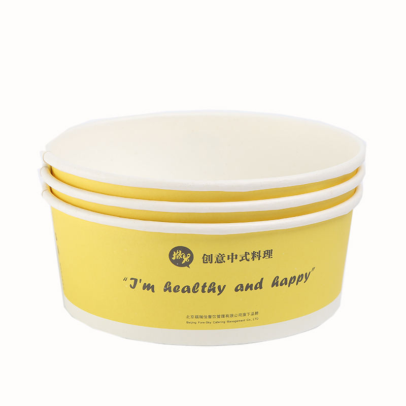 Desechable al por mayor impresión personalizada redondo arroz agua sopa comida rápida para llevar ensalada helado contenedores cuenco de papel con tapa