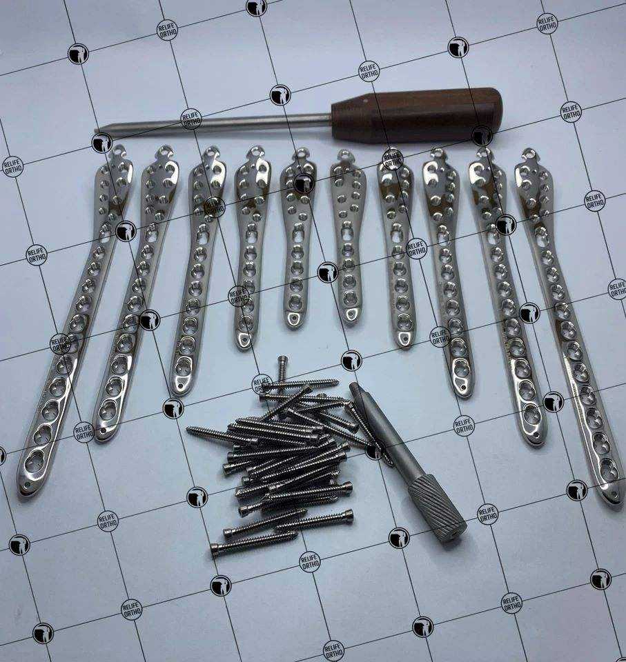Placa de bloqueo de tibia distal de 3,5mm (6H a 12H) con tornillos de bloqueo (juego de 100 piezas) Implantes quirúrgicos ortopédicos veterinarios 316L