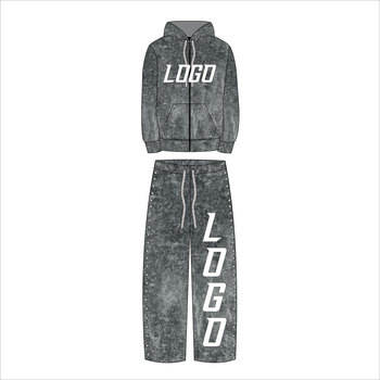 Suéter de lavado ácido desgastado 3D 3D bordado forrado peso pesado recortado Sudadera con capucha de alta calidad para hombres sudaderas con capucha personalizadas