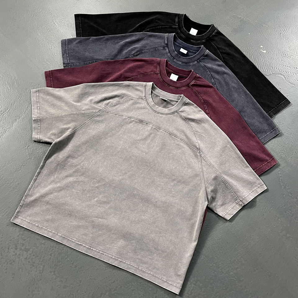 Camiseta con panel de contraste desgastado 285G Batik lavado, diseño raglán 2025 SS