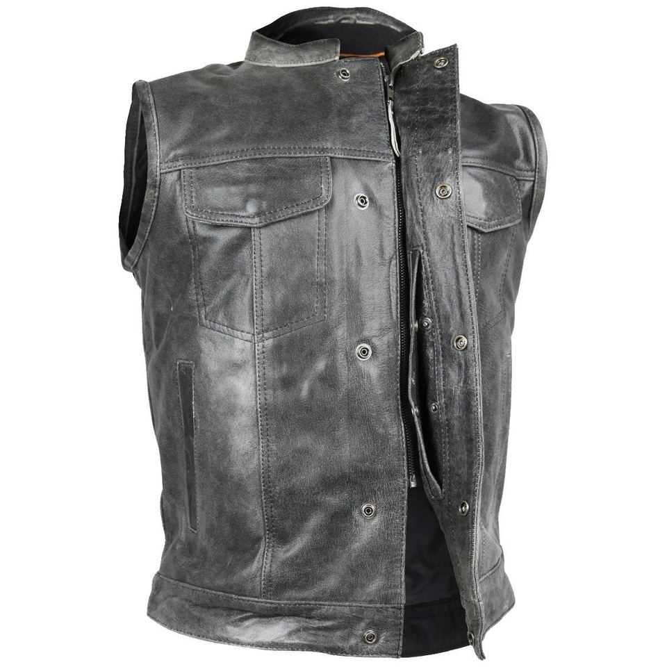 Chaleco de Cuero Personalizado con Acabado Desgastado, Cuello Redondo, Cierre de Botones Cubiertos, Tejido Transpirable, Servicio OEM para Portación Oculta