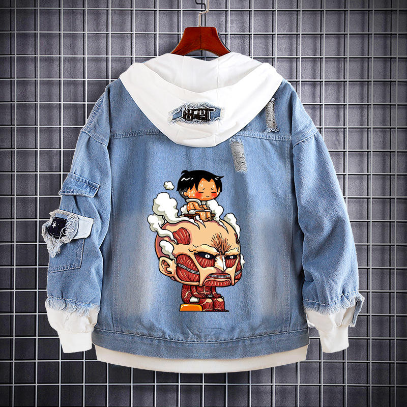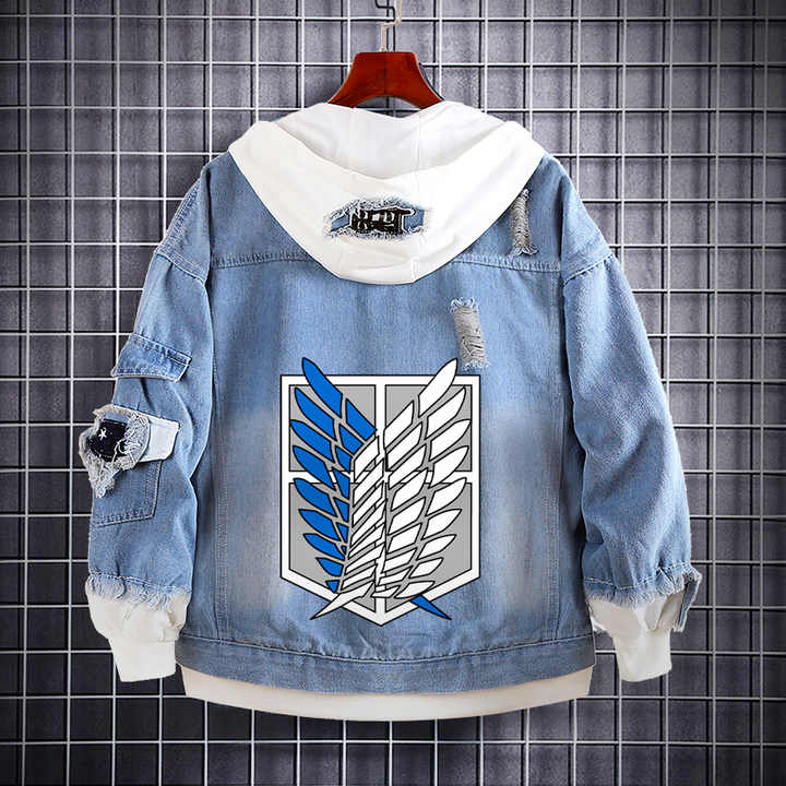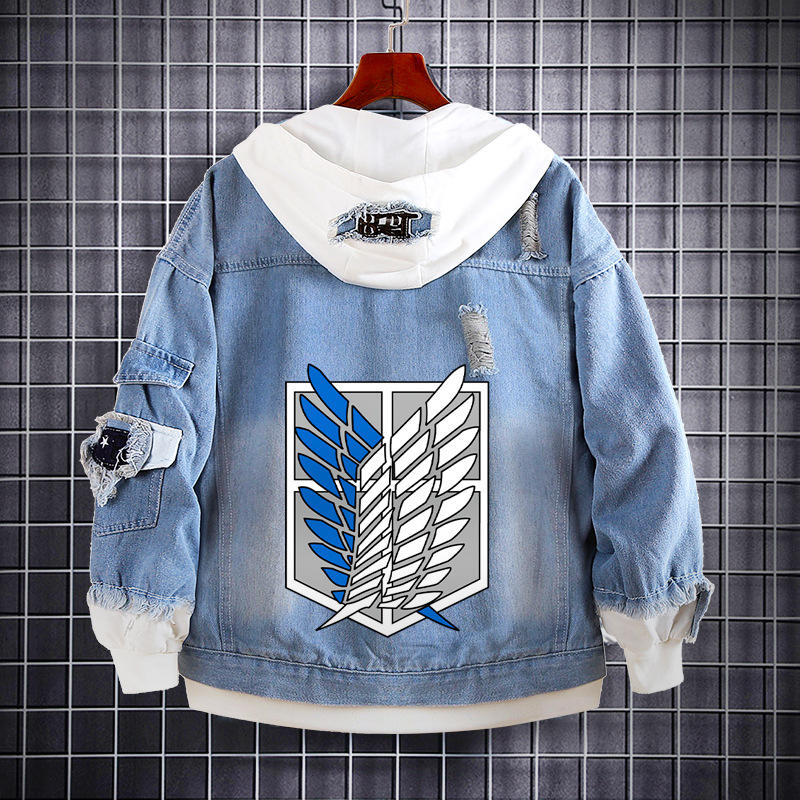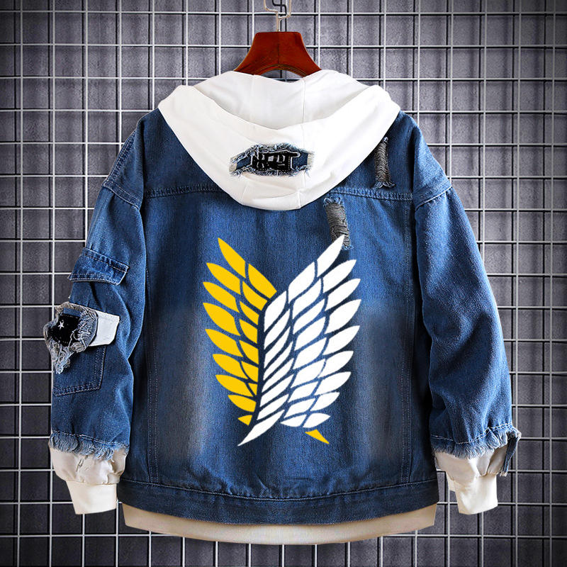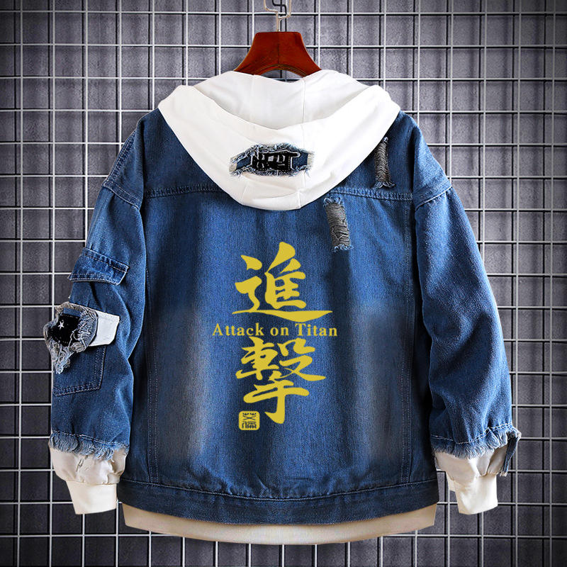 Chaqueta de Jean Desgastada con Capucha para Hombre y Botones en la Solapa, Sudadera de Mezclilla de Anime Eren Yeager Soldado de Attack on Titan