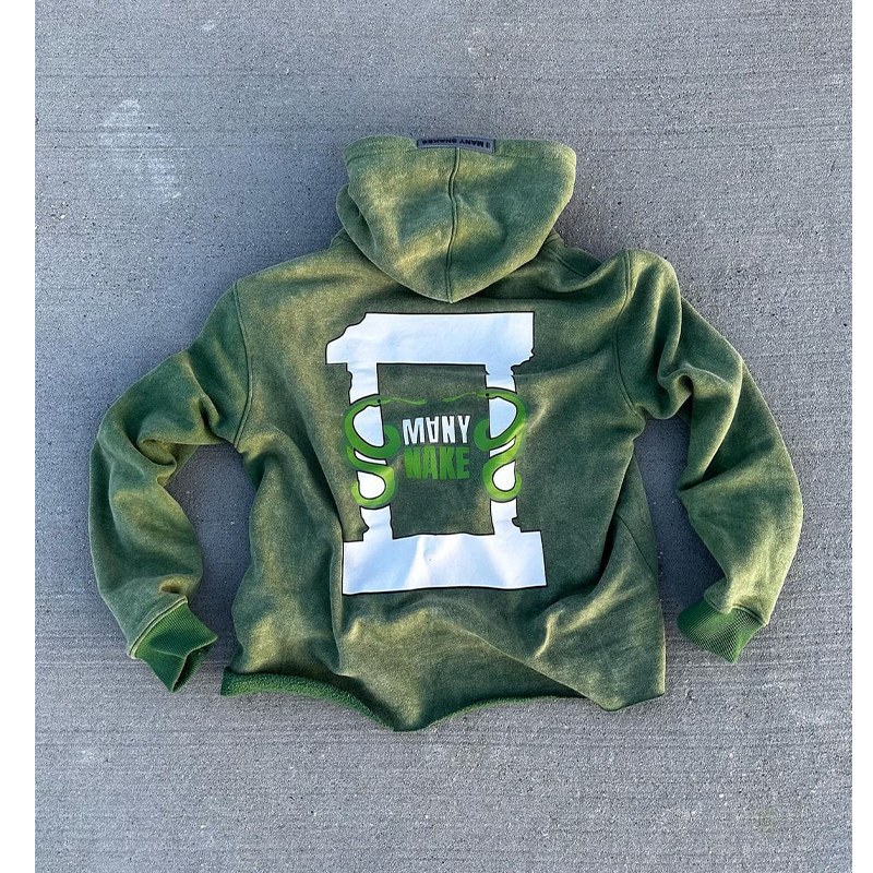 Parche bordado desgastado Traje de sudor para hombre Sudadera con capucha y cremallera Pantalones acampanados Chándal Unisex Pantalones de chándal lavados con ácido y conjunto de Sudadera con capucha