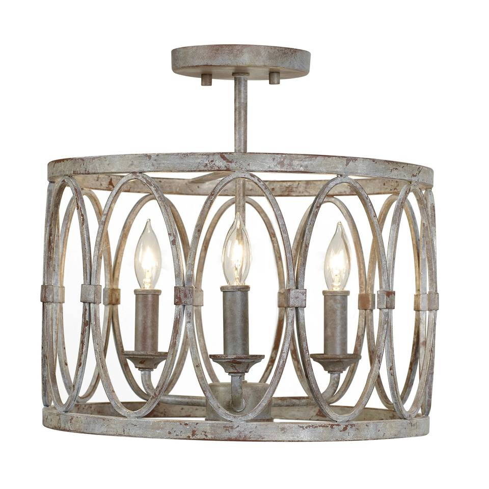 Lámpara de Techo Ovalada de Hierro Gris Envejecido, Estilo Rústico Retro, Semi-Colgante