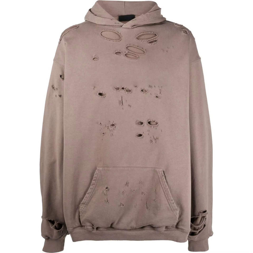 Sudadera con capucha extragrande de punto desgastado para el método de tejido lavado de patrón sólido de invierno