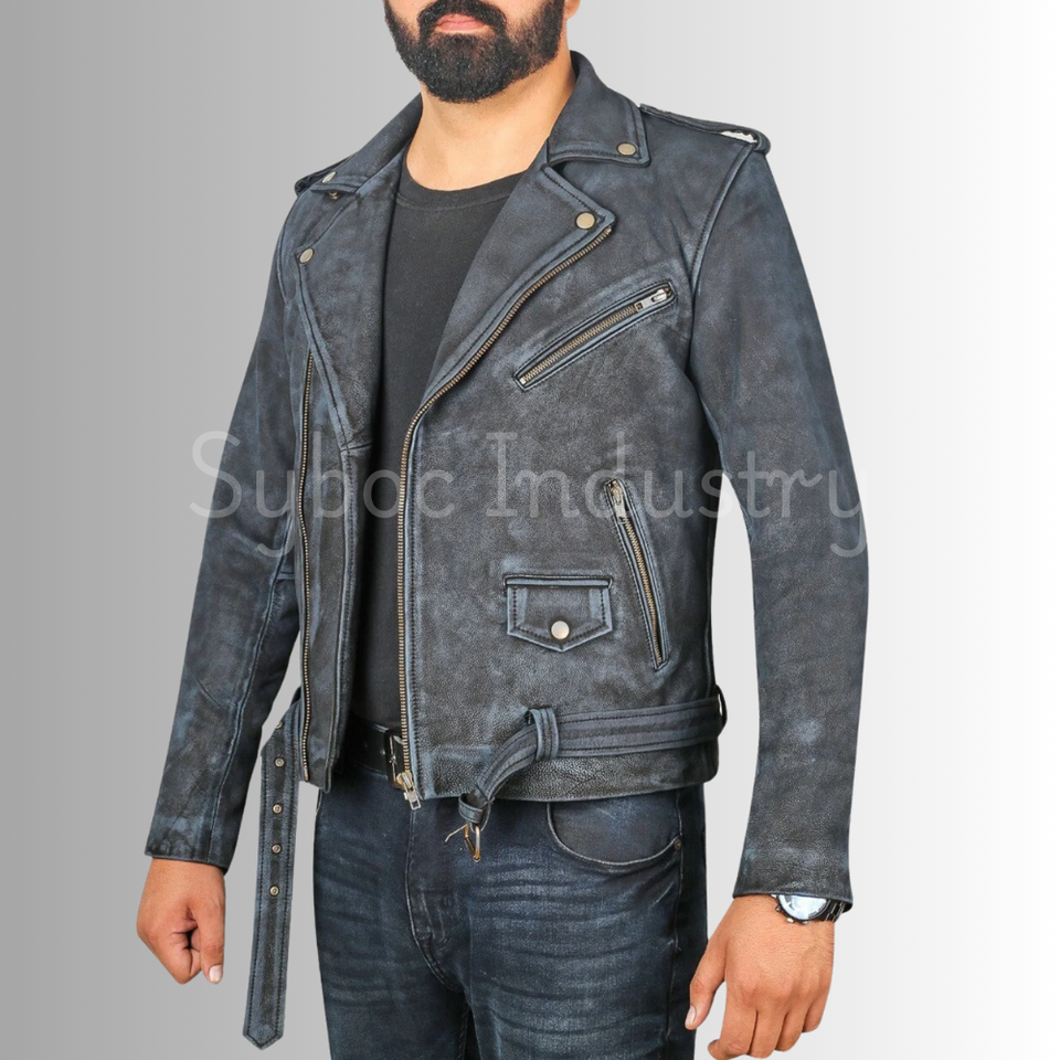Chaqueta de motorista de cuero Vintage desgastada para hombre, chaqueta de motocicleta de cuero Real Napa, chaqueta elegante de Cafe Racer