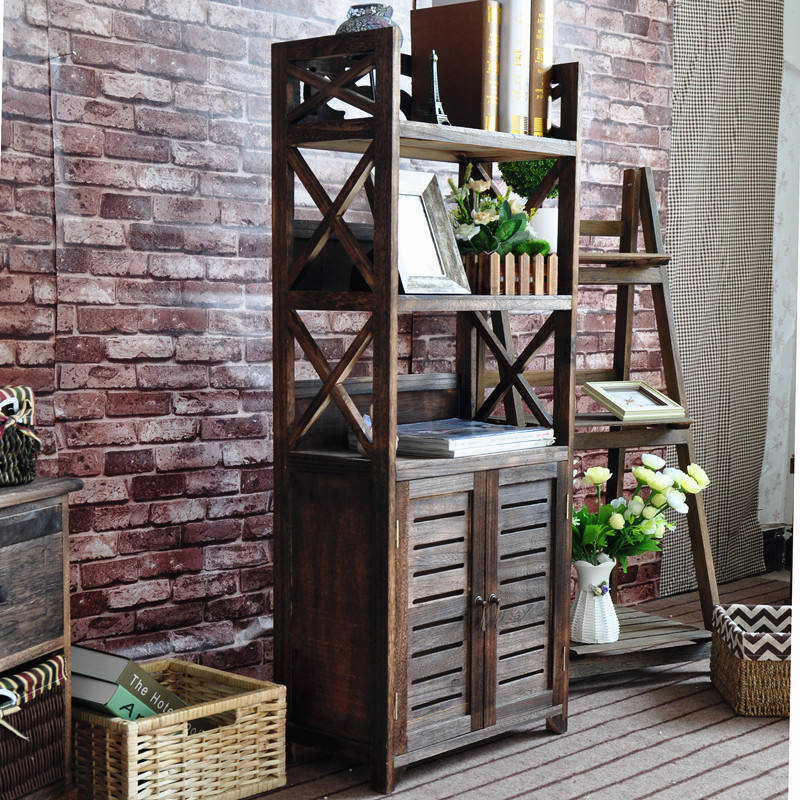 Estantería tallada en madera desgastada, estante para libros de estudio, armario de almacenamiento de libros, estanterías de madera maciza
