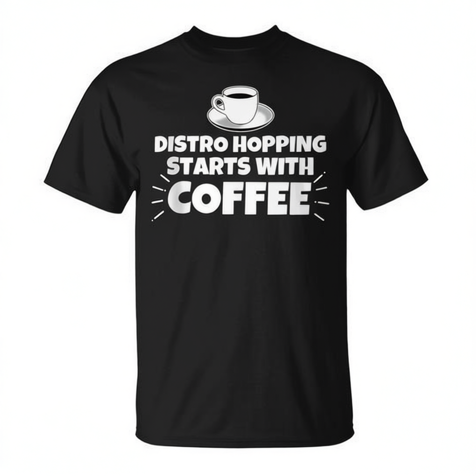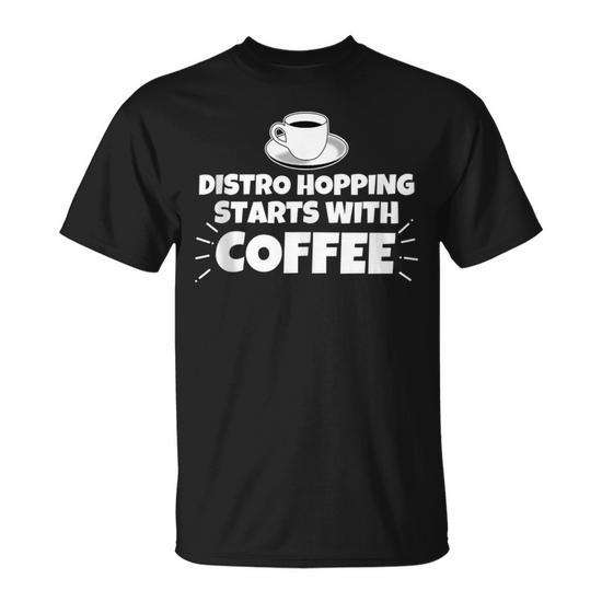 Camiseta Distro Hopping Starts With Coffee, camiseta gráfica divertida, ropa informal para hombres y mujeres