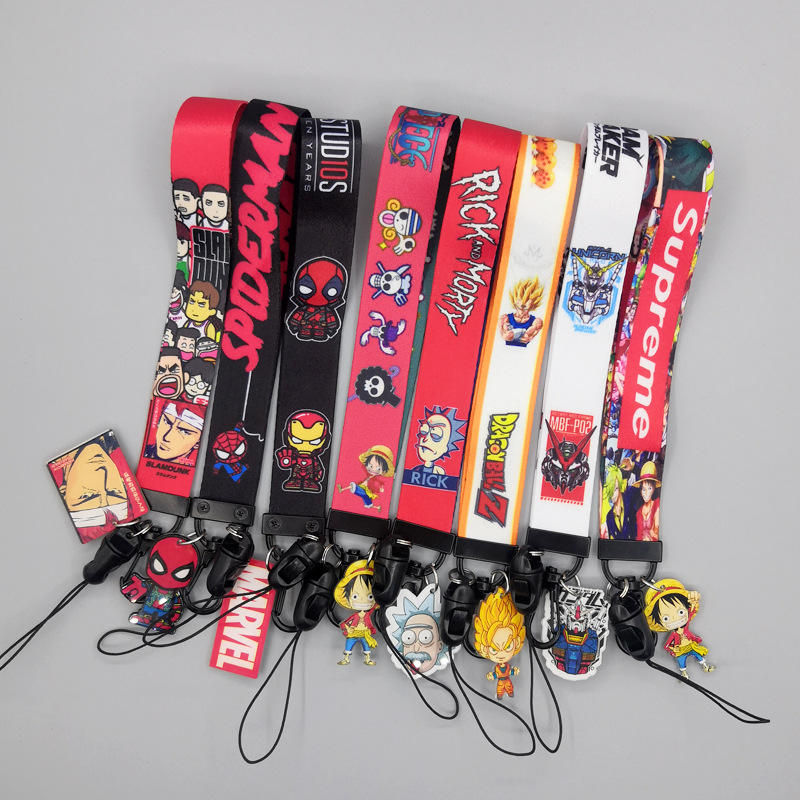 Cordón corto para teléfono móvil con diseños de dibujos animados personalizables y diversos, para tarjetas de identificación con impresión por transferencia térmica.