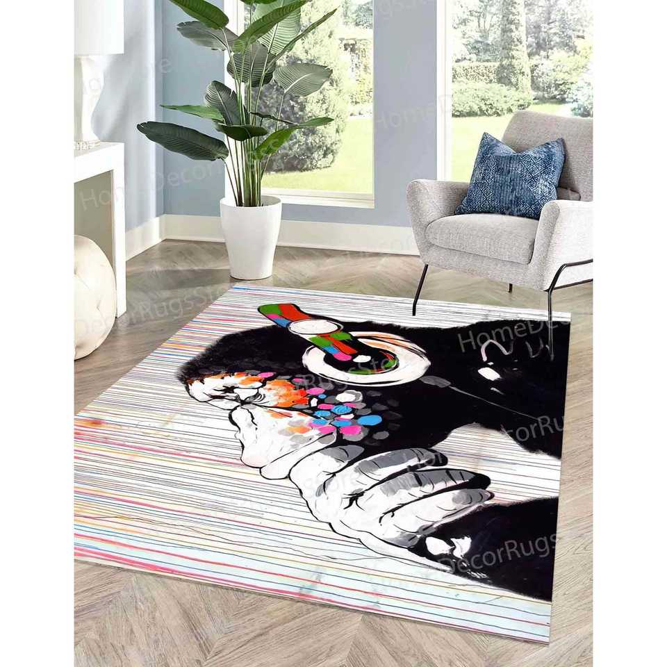 Alfombra Estampada Dj Monkey Rugs: Alfombra de Calle con Mono Pensando de Banksy, Alfombra de Terciopelo de Lujo